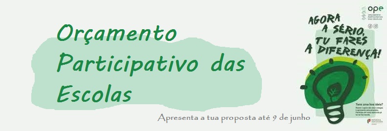 O Orçamento Participativo das Escolas está de volta, pelo quinto ano consecutivo! Os estudantes do 3.º ciclo do ensino básico e do ensino secundário vão poder decidir o que querem melhorar na sua escola. Para isso, precisam de ter uma ideia, reunir apoio e, claro, conseguir os votos dos colegas! Trata-se de um processo democrático que acontece em cada uma das nossas escolas com 3.º ciclo.