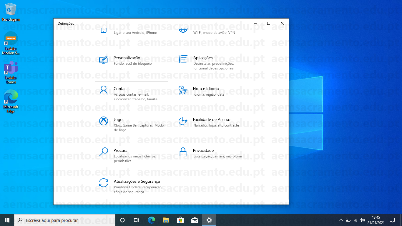 Aceder ao “Menu Iniciar” (Botão no canto inferior esquerdo do ecrã) e selecionar o botão “Definições”.