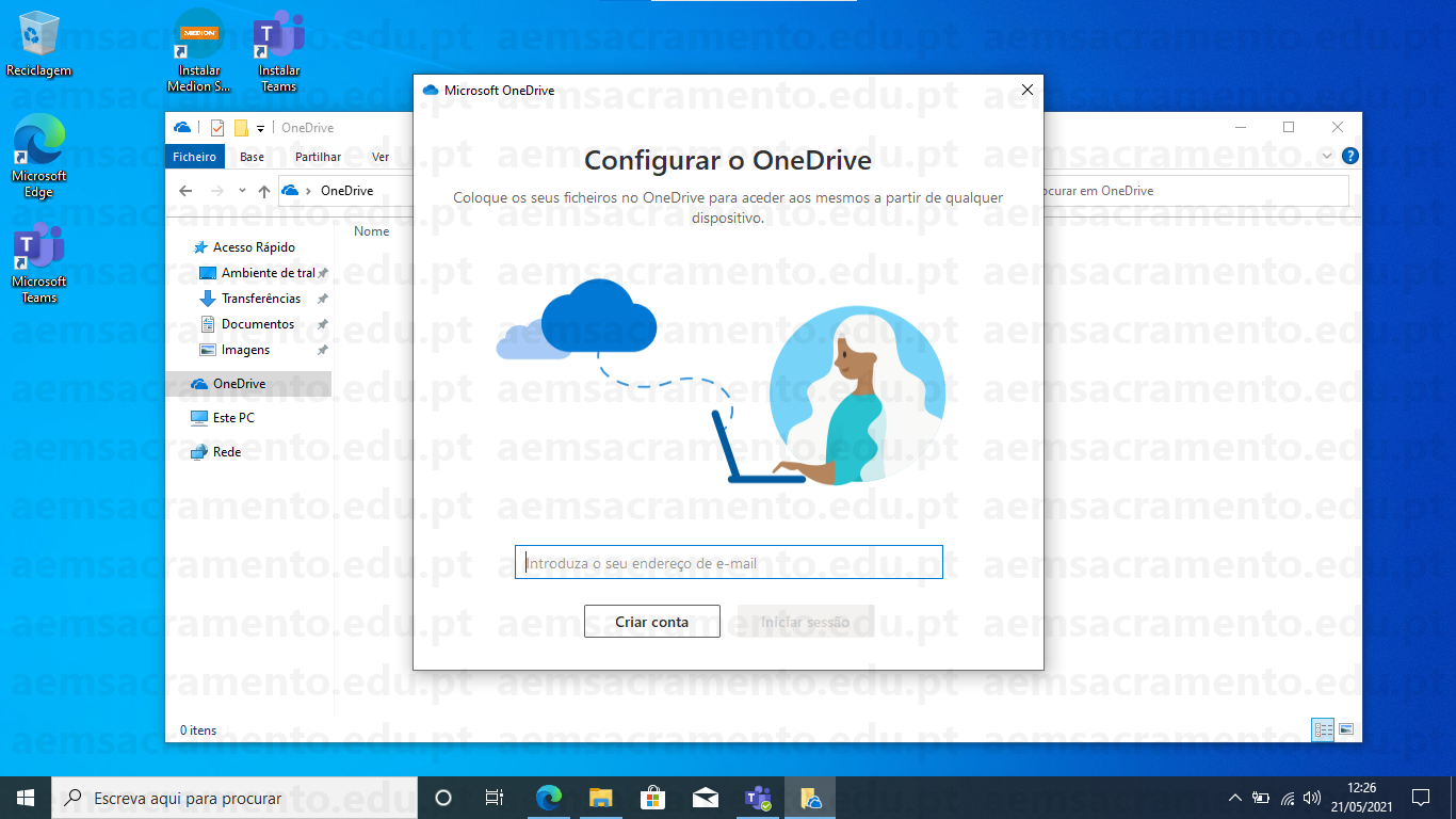 10 - Configuração e integração do OneDrive com o sistema de ficheiros do sistema operativo.