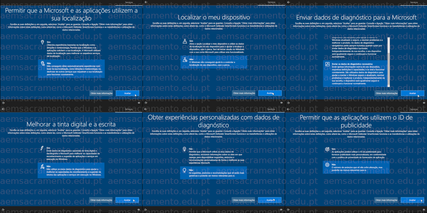 Nota: Pretende-se que sejam enviados o menor número de dados de telemetria para a Microsoft. No entanto esta é uma opção do utilizador.